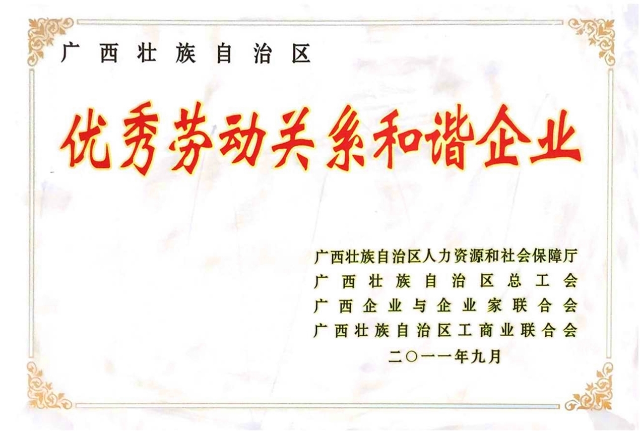 廣西壯族自治區(qū)優(yōu)秀勞動關(guān)系和諧企業(yè)